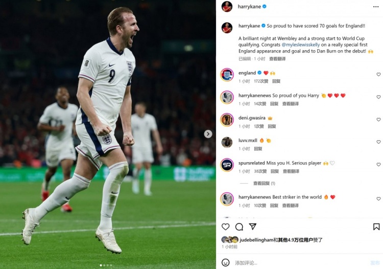 2025-03-22 11:30:22凯恩社媒晒照:自豪打进在英格兰的第70球,祝贺斯凯利首秀破门