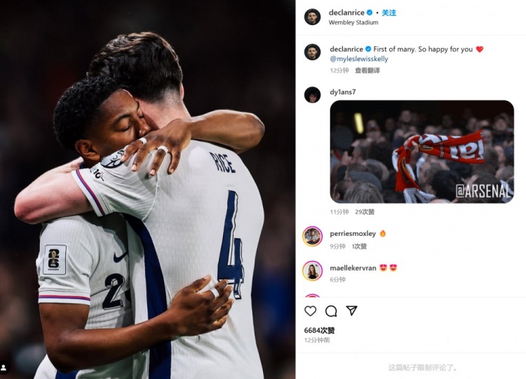 2025-03-22 11:35:18赖斯社媒晒与斯凯利拥抱照:未来众多进球里的第一个!为你开心