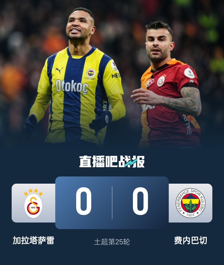 土超联赛第25轮,加拉塔萨雷0-0战平费内巴切,继续以6分优势领跑土超。