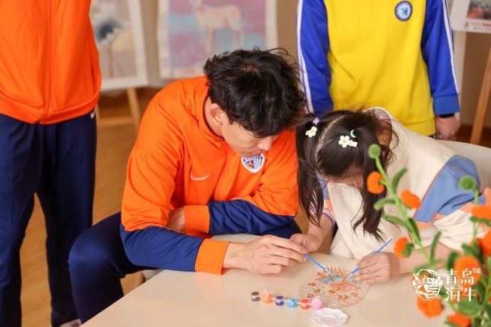 俱乐部领导与球员们一同前往孩子们学习的地方,与他们在绘画室进行绘画,在律动教室一同舞动。此外,球员们与孩子进行了趣味的足球活动,孩子们脸上洋溢着开心的笑容,现场气氛温馨而热烈。