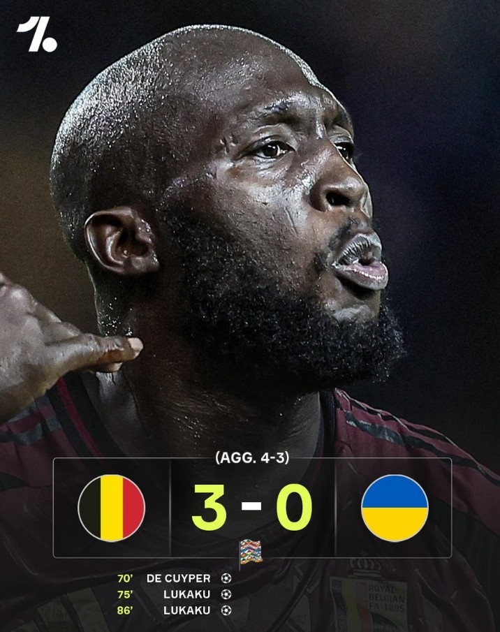 2025-03-24 06:38:47欧国联升级赛次回合比利时3-0击败乌克兰,卢卡库梅开二度