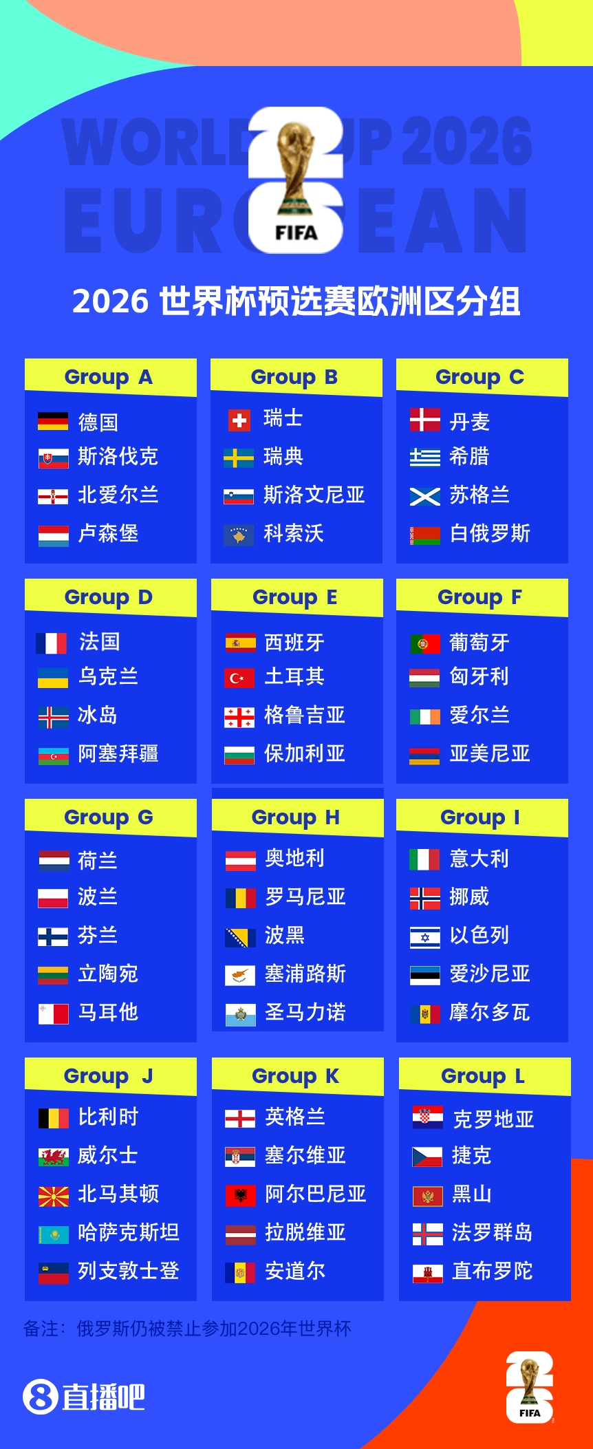 03月24日讯 欧国联1/4决赛结束,欧洲区世预赛分组也随之全部确定。