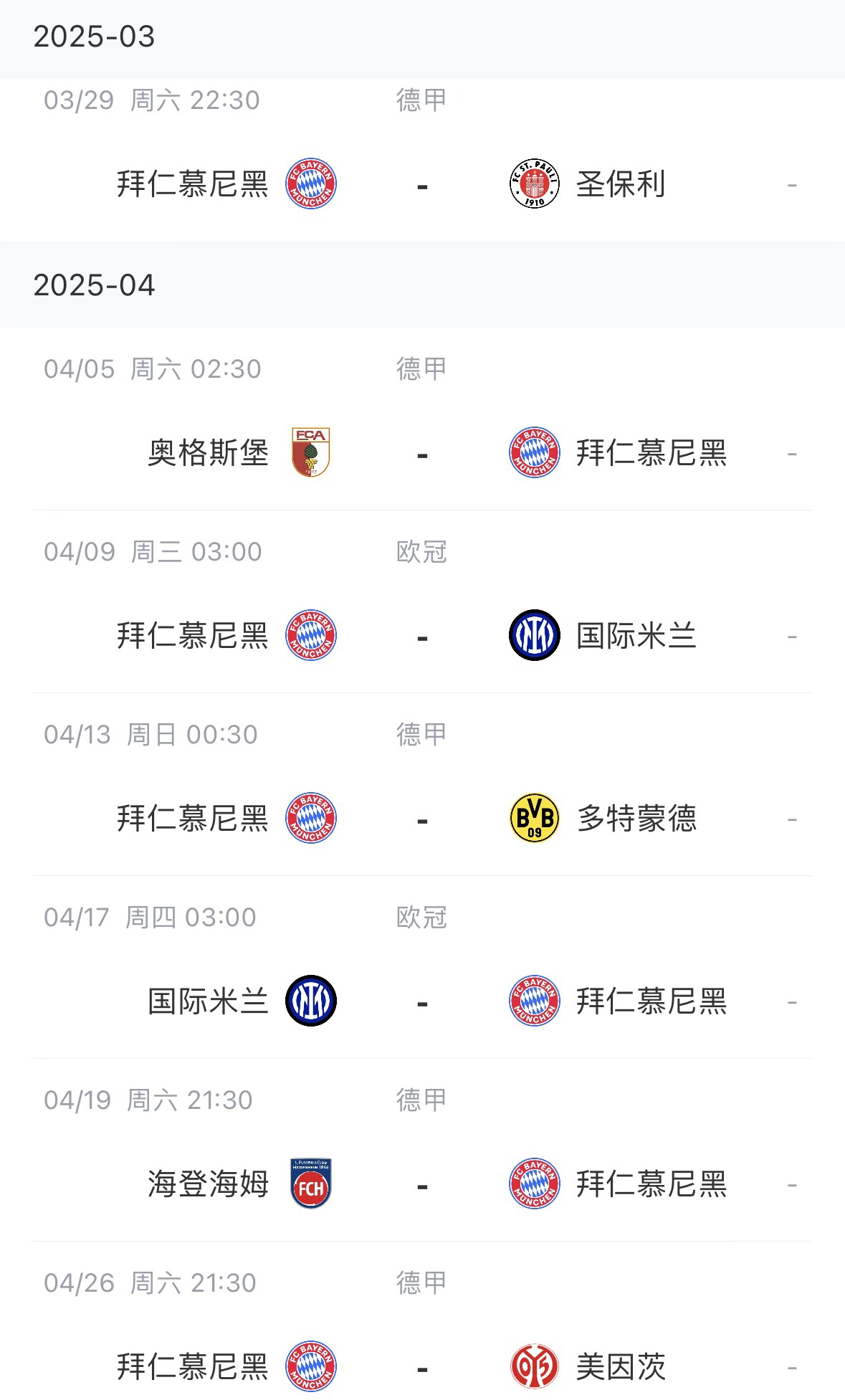 2025-03-26 18:50:08德甲悬了?拜仁下个月两回合打国米&国家德比 此前德甲已两轮不胜