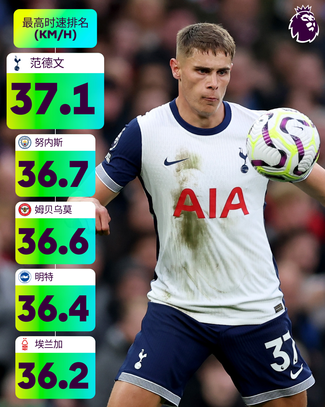 2025-03-26 18:55:43本赛季英超至今球员最高时速:范德文领跑,努内斯、姆贝莫二三
