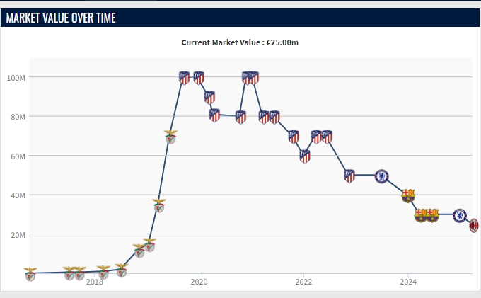 2025-03-26 18:57:04巅峰1亿欧!25岁菲利克斯在米兰10场1球,最新身价跌至2500万欧
