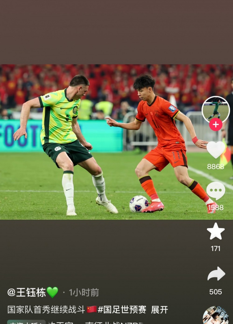 2025-03-26 19:02:09王钰栋社媒晒国足首秀照,蒯纪闻留言:太爱你了兄弟