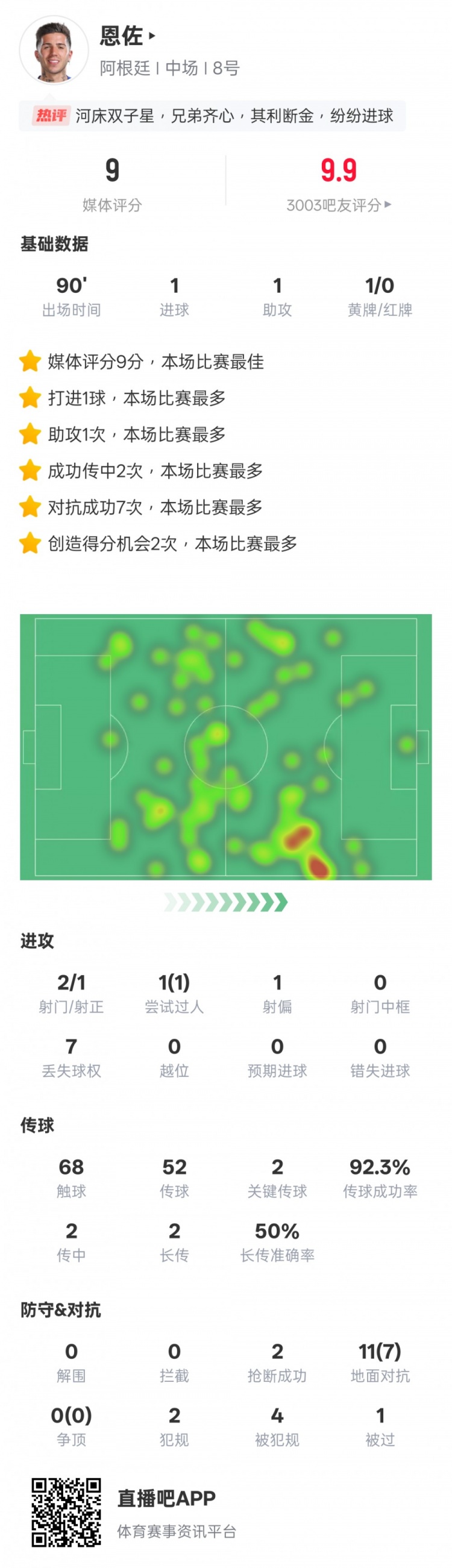 2025-03-26 19:05:09恩佐本场数据:传射建功+2关键传球,评分9.0全场最高