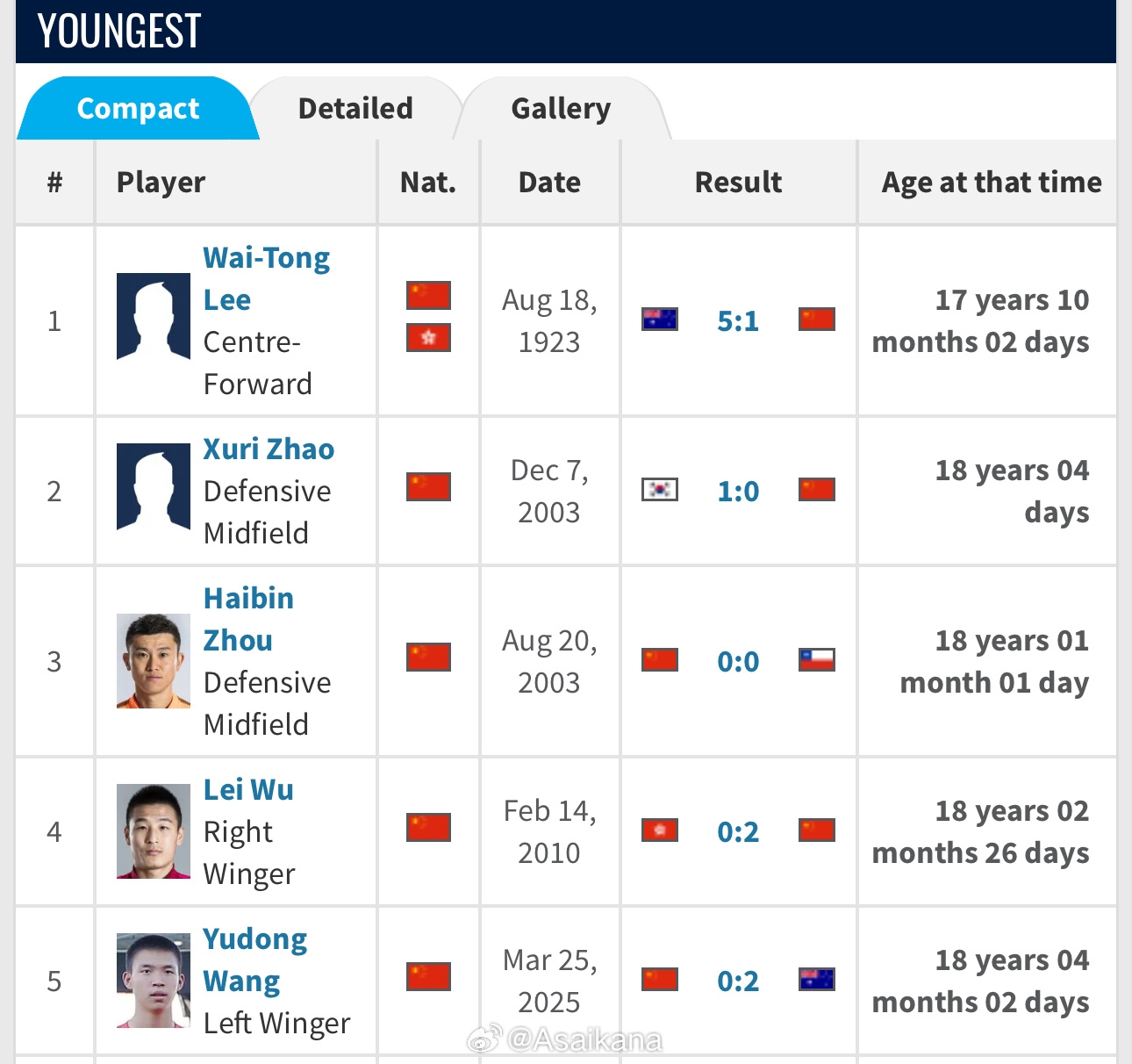 2025-03-26 19:08:42不算上古大神,王钰栋在国足A级最年轻出场里排第四(18岁4个月)