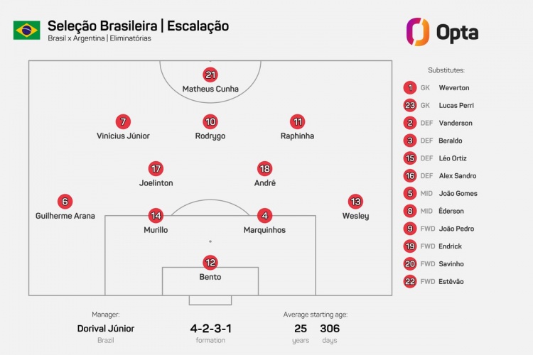 2025-03-26 19:09:38能行吗?巴西先发阵容6名球员国家队首发不超过5次