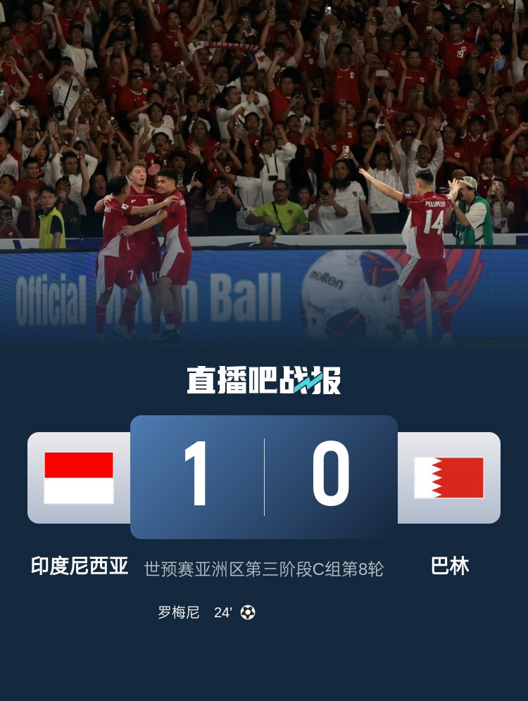 世预赛亚洲区第三阶段C组第8轮,罗梅尼单刀破门,印度尼西亚1-0巴林。印尼此役后领先国足3分。