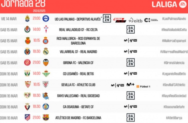 2025-02-25 21:01:39西甲公布联赛第28轮比赛时间:马竞vs巴萨强强对话,皇马客战黄潜