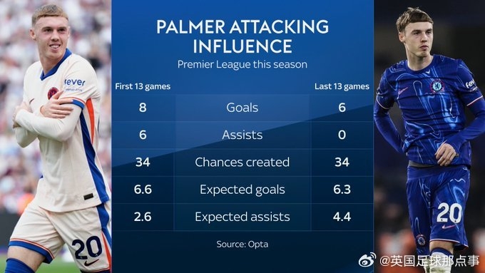 2025-02-25 21:02:25天空体育:帕尔默过去13场英超创造34次机会,但没有收获一个助攻