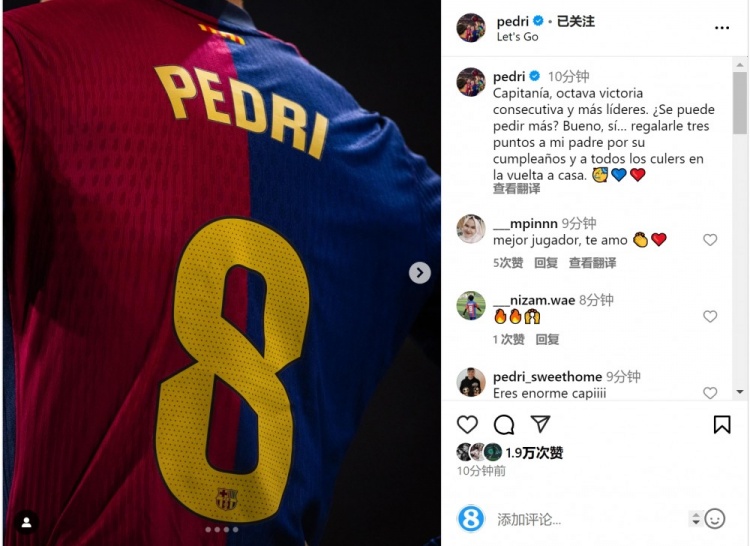 2025-03-28 18:56:13全场最佳!佩德里社媒:担任队长+西甲8连胜,三分献给巴萨球迷