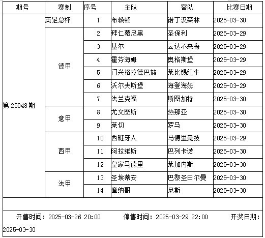 2025-03-28 18:56:54传足胜负彩第25048期看点:尤文新帅首秀 皇马留意FIFA病毒