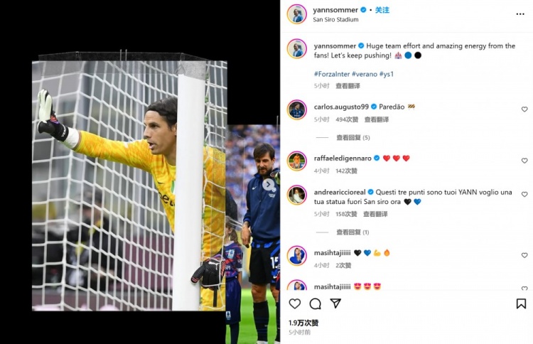 2025-03-31 12:10:41神扑救主!索默社媒晒照庆祝:全队做出巨大努力,让我们继续前进