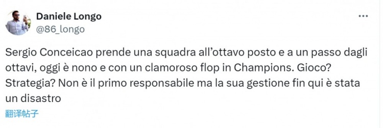2025-03-31 22:01:32隆戈:米兰联赛排名下降+欧冠出局,孔塞桑至今的执教堪称灾难