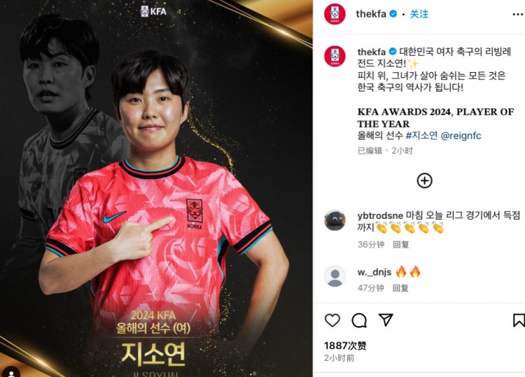 2025-03-31 22:09:21官方:34岁韩国女足名将池笑然当选韩足协2024年度最佳女足球员