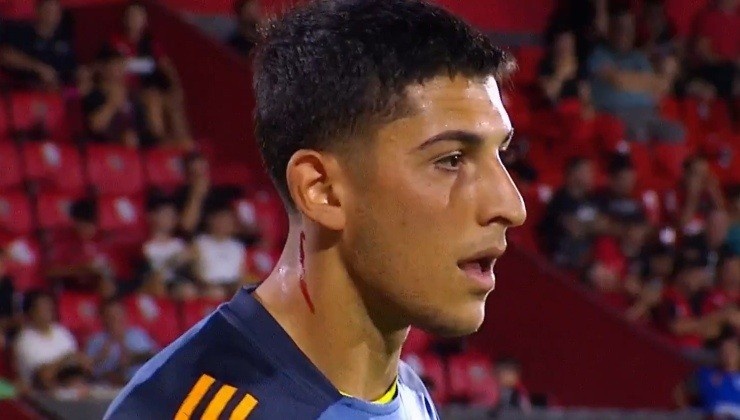 2025-04-01 12:30:48博卡门将被对方球迷丢下的玻璃划伤脖子后流血,但他仍照常热身