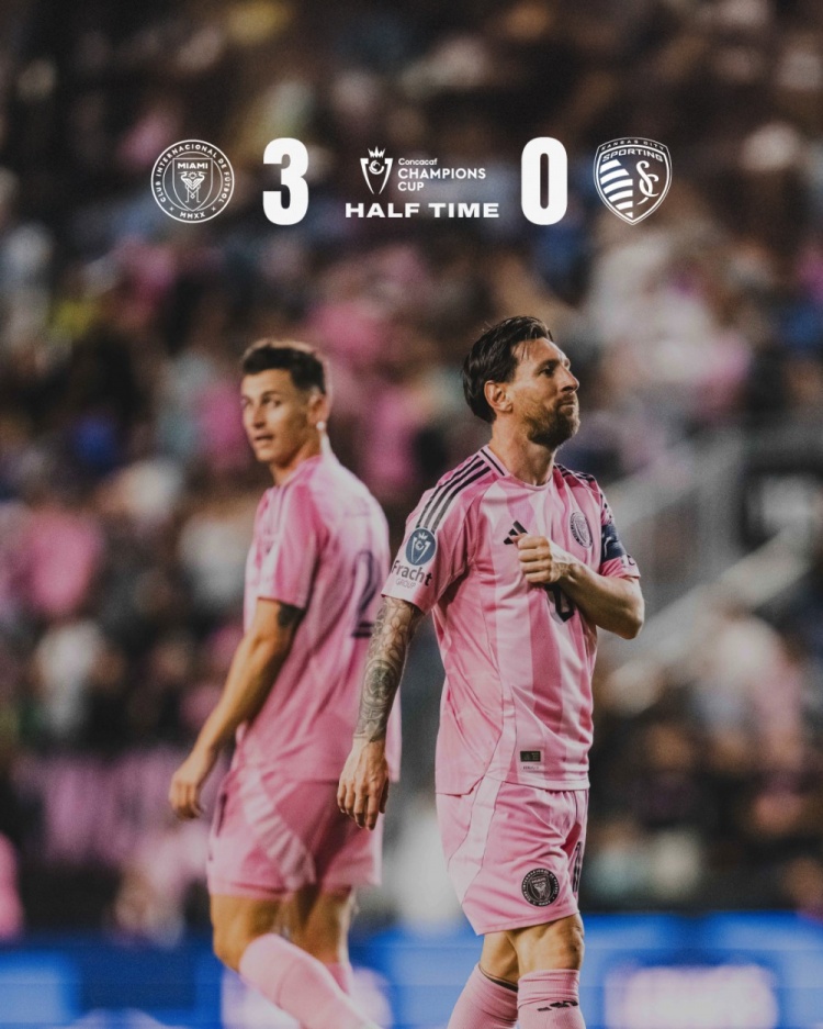 上半场比赛结束,迈阿密国际3-0堪萨斯城竞技。
