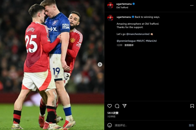 2025-02-27 07:00:21乌加特晒和德拉普顶牛照片:重回胜利轨道,老特拉福德氛围太棒了