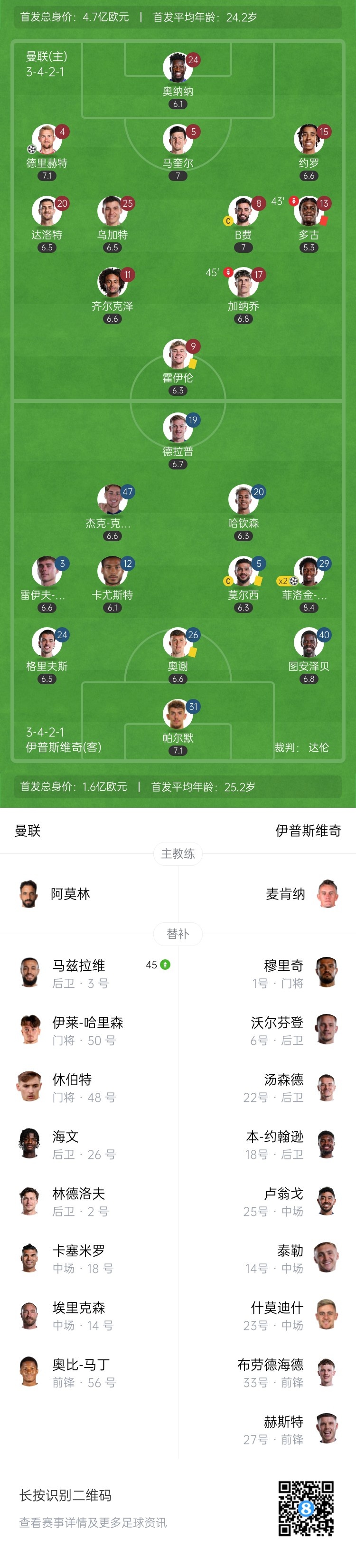 2025-02-27 07:01:03曼联vs伊镇半场数据:射门7-4,射正5-2,控球率61%-39%,角球3-0
