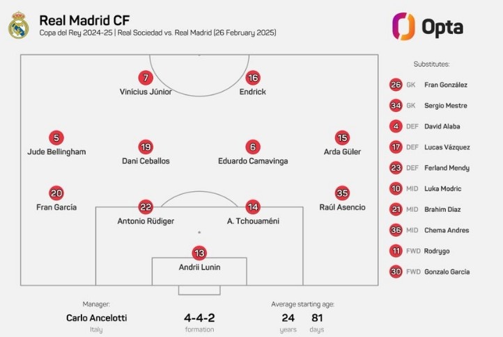 2025-02-27 07:01:09皇马变阵,居勒尔、恩德里克、维尼修斯首次搭档先发出战