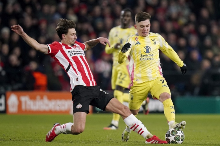 继前一天AC米兰和亚特兰大双双在欧冠淘汰赛附加赛折戟后,接续出战的尤文图斯,踏入了和两队相似的河流。面对难言兵强马壮的埃因霍温,被动挨打的斑马军团在低气压中,以1比3完败出局。