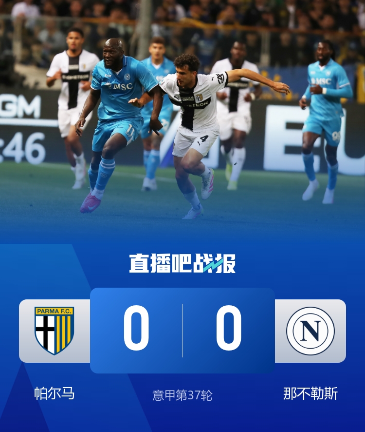 赛季意甲第37轮,那不勒斯客场0-0战平帕尔马,仍1分优势领先国米。