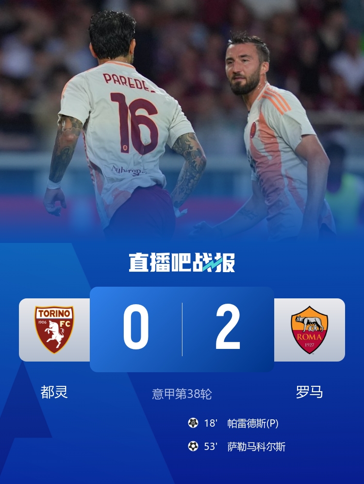 1分之差!罗马2-0都灵第5收官进欧联 萨56破门+造点帕雷德斯点射