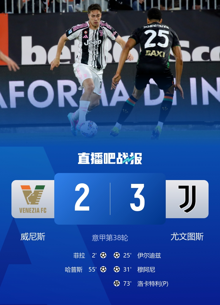 进欧冠!尤文3-2威尼斯锁定意甲前四 穆阿尼破门洛卡特利点射制胜