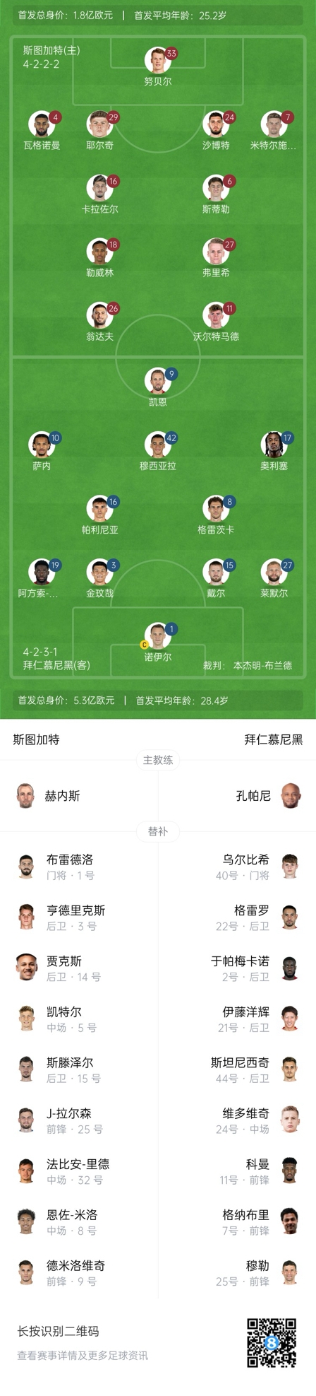 3月1日讯 德甲第24轮,斯图加特主场迎战拜仁慕尼黑,赛前首发名单公布。