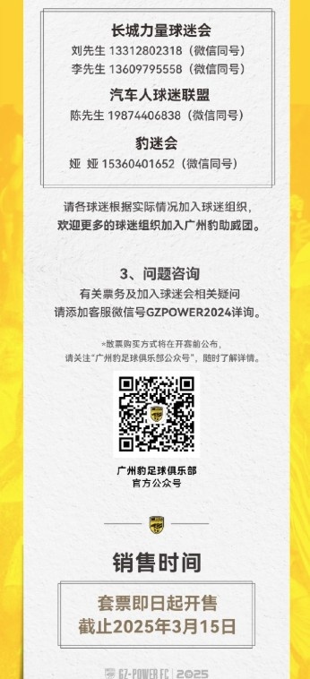 2025-03-01 22:03:31广州豹新赛季主场票务公告:个人套票599元/赛季,散票最高100元