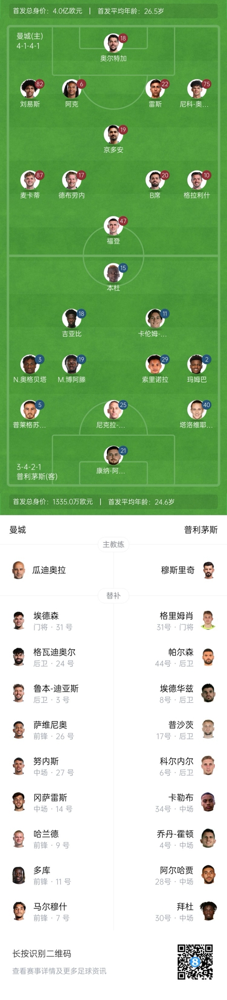 2025-03-02 02:24:51足总杯-曼城vs普利茅斯首发:雷斯、京多安、刘易斯出战