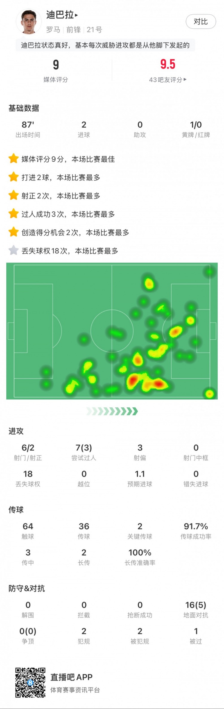 2025-02-21 17:34:29迪巴拉全场数据:2粒进球,2次创造得分机会,3次成功过人
