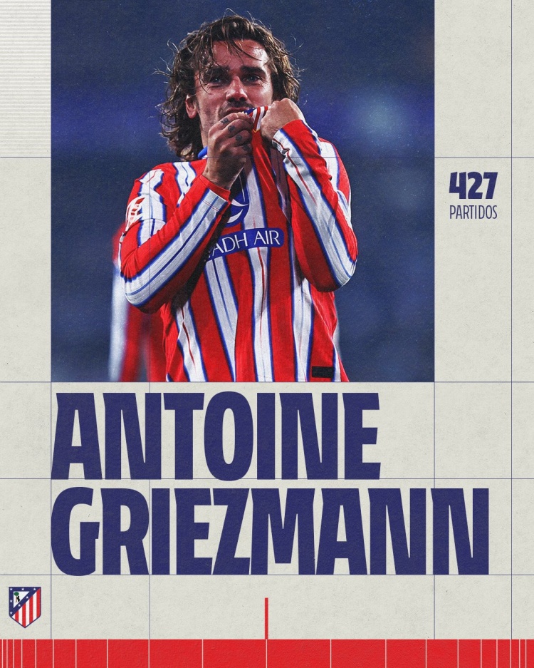 2025-03-02 07:21:12格列兹曼已代表马竞出场427次,追平萨乌尔并列马竞队史第8
