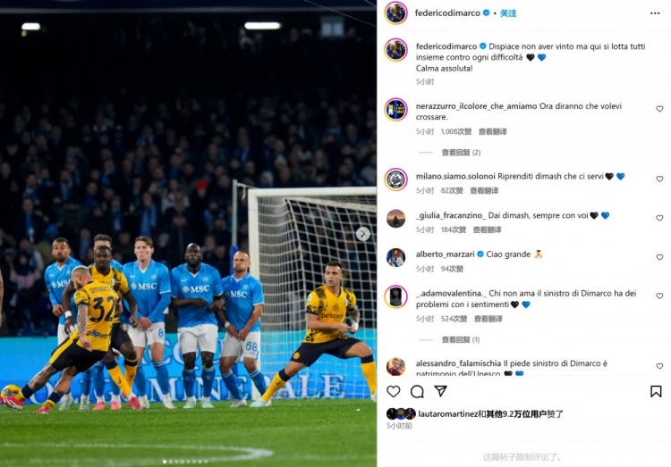 2025-03-02 14:11:46迪马尔科晒任意球破门瞬间:很遗憾未能取胜,但我们在团结拼搏