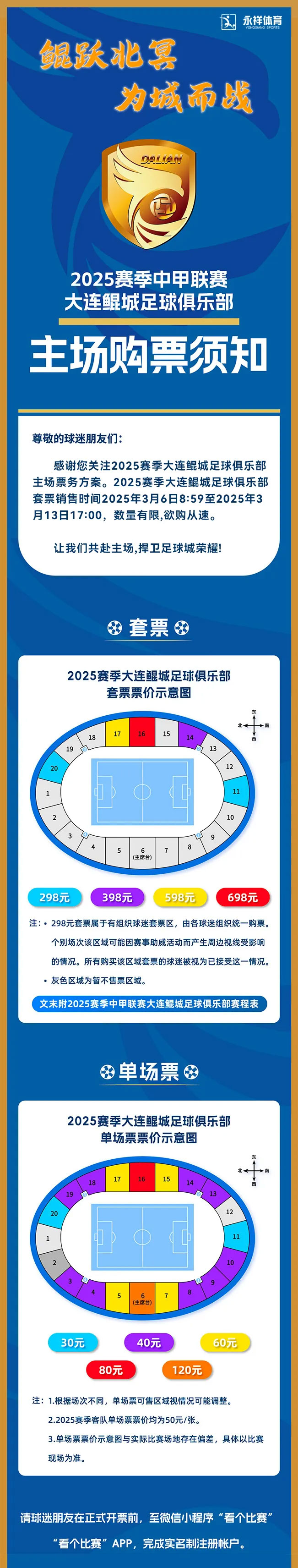 2025-03-05 17:23:51开票倒计时1天!(附2025赛季大连鲲城足球俱乐部赛程)