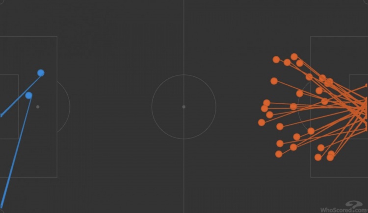2025-03-06 08:14:03夸张哦!利物浦1-0巴黎射门图:巴黎密密麻麻 红军有1脚踢向角旗