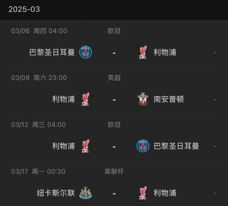 2025-03-06 08:17:45⚔巴黎vs利物浦首发:登贝莱pk萨拉赫,克瓦拉、迪亚斯出战