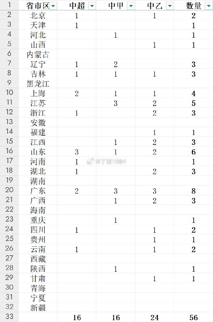 2025-03-06 16:34:03三级职业联赛球队分布:广东省8队最多,山东省6队第二江苏省第三