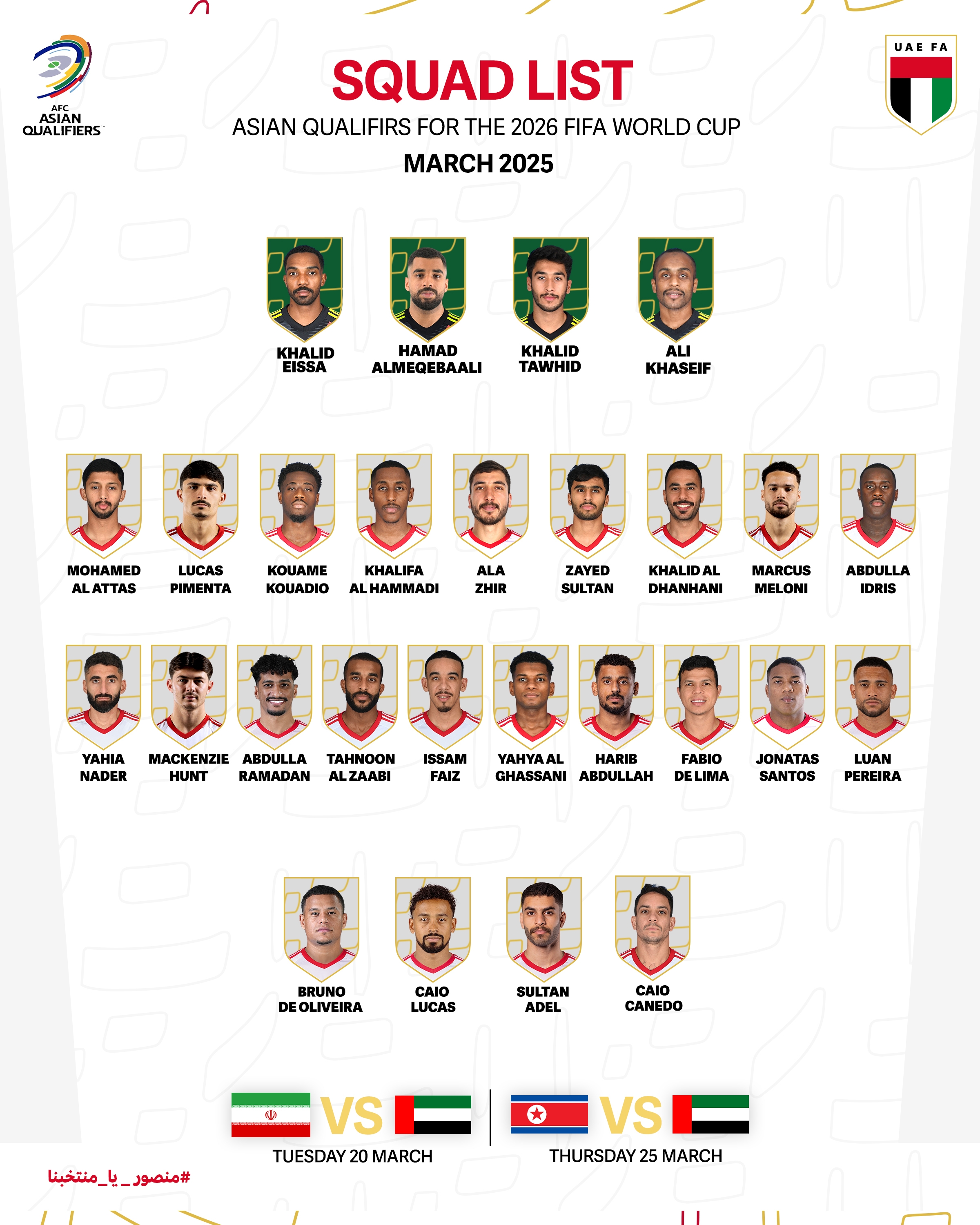 2025-03-06 16:35:10八大归化!阿联酋大名单征召8名巴西归化,本月将战伊朗、朝鲜