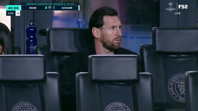 2025-03-07 10:03:49半场遭读秒进球!迈阿密半场结束前0-1落后,梅西在场边愁容满面