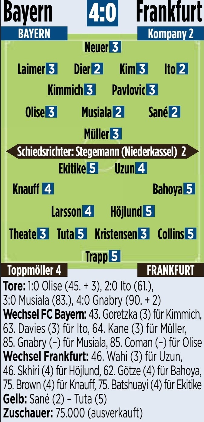 2025-02-24 14:02:07图片报评分:穆西亚拉、萨内、伊藤洋辉、戴尔2分并列最佳