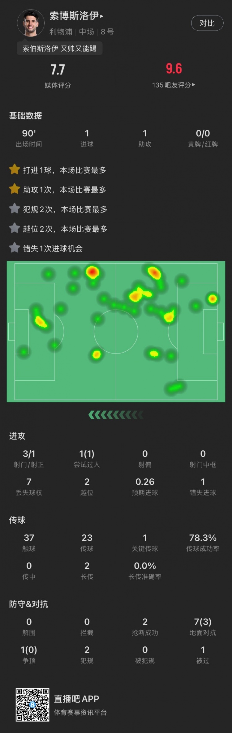 2025-02-24 14:03:55索博本场:传射建功,越位2次全场最多,2抢断,8次对抗成功3次